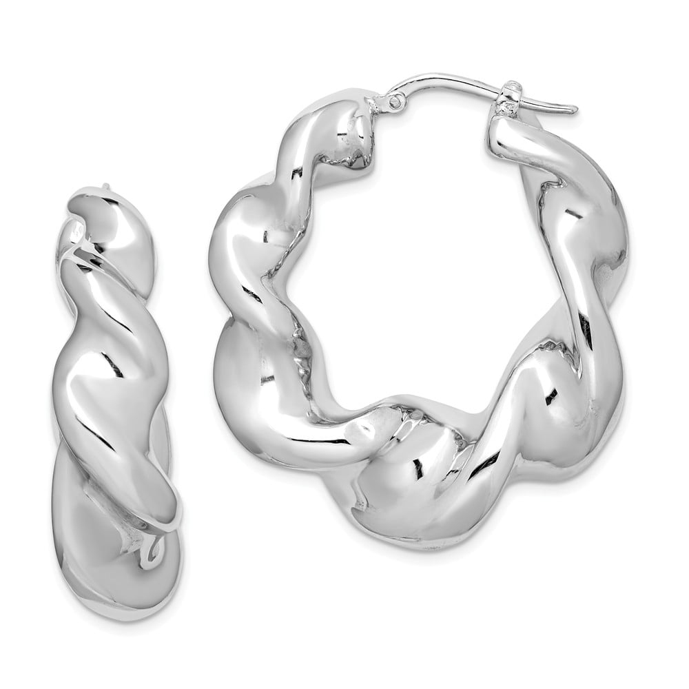 Twisted silver hoop earrings clearance, Sterling Silver Oval Diamond Cut Twist Hoop Earrings - Walmart.com clearance