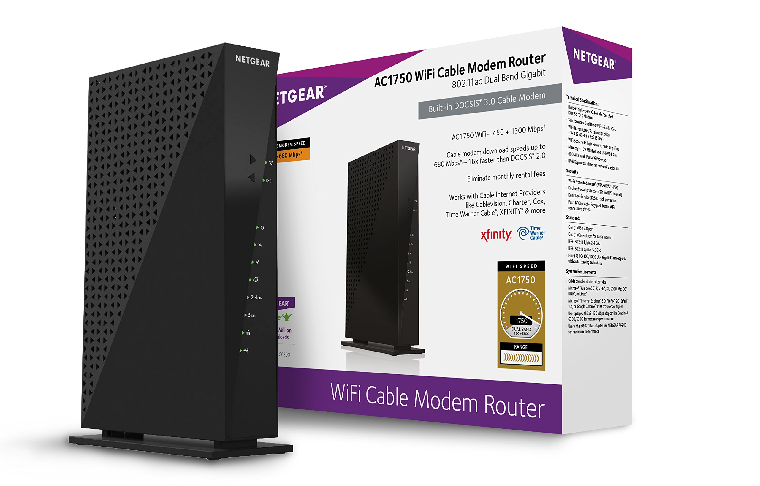 - Netgear ac1750 wifi cable modem router model c6300