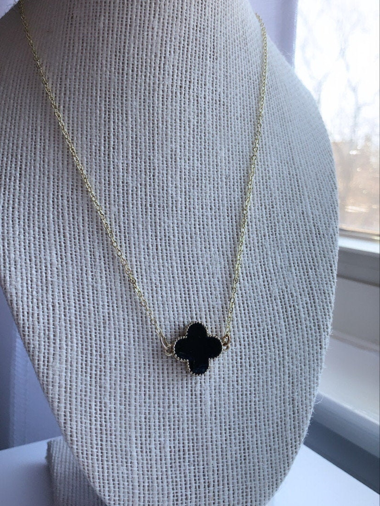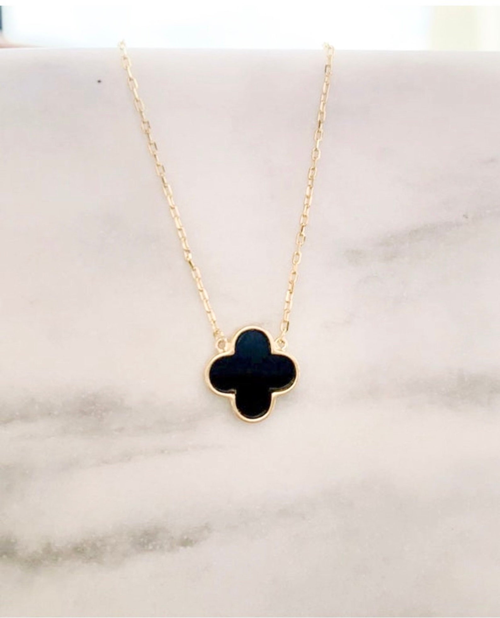 Clover black necklace clearance, Beautiful Silver And Black Enamel Four Leaf Clover Necklace/ | Etsy clearance