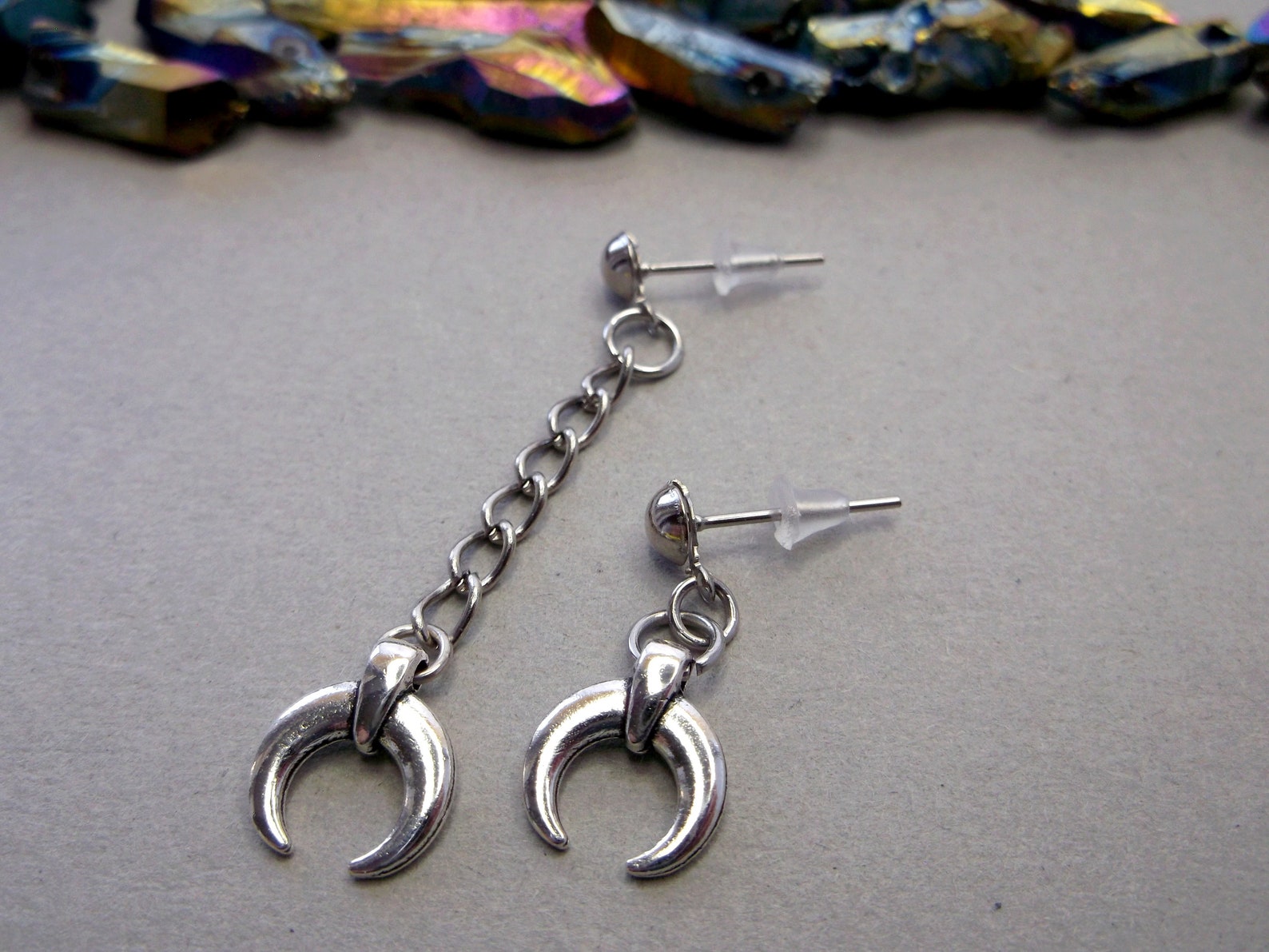 Silver horn earrings clearance
