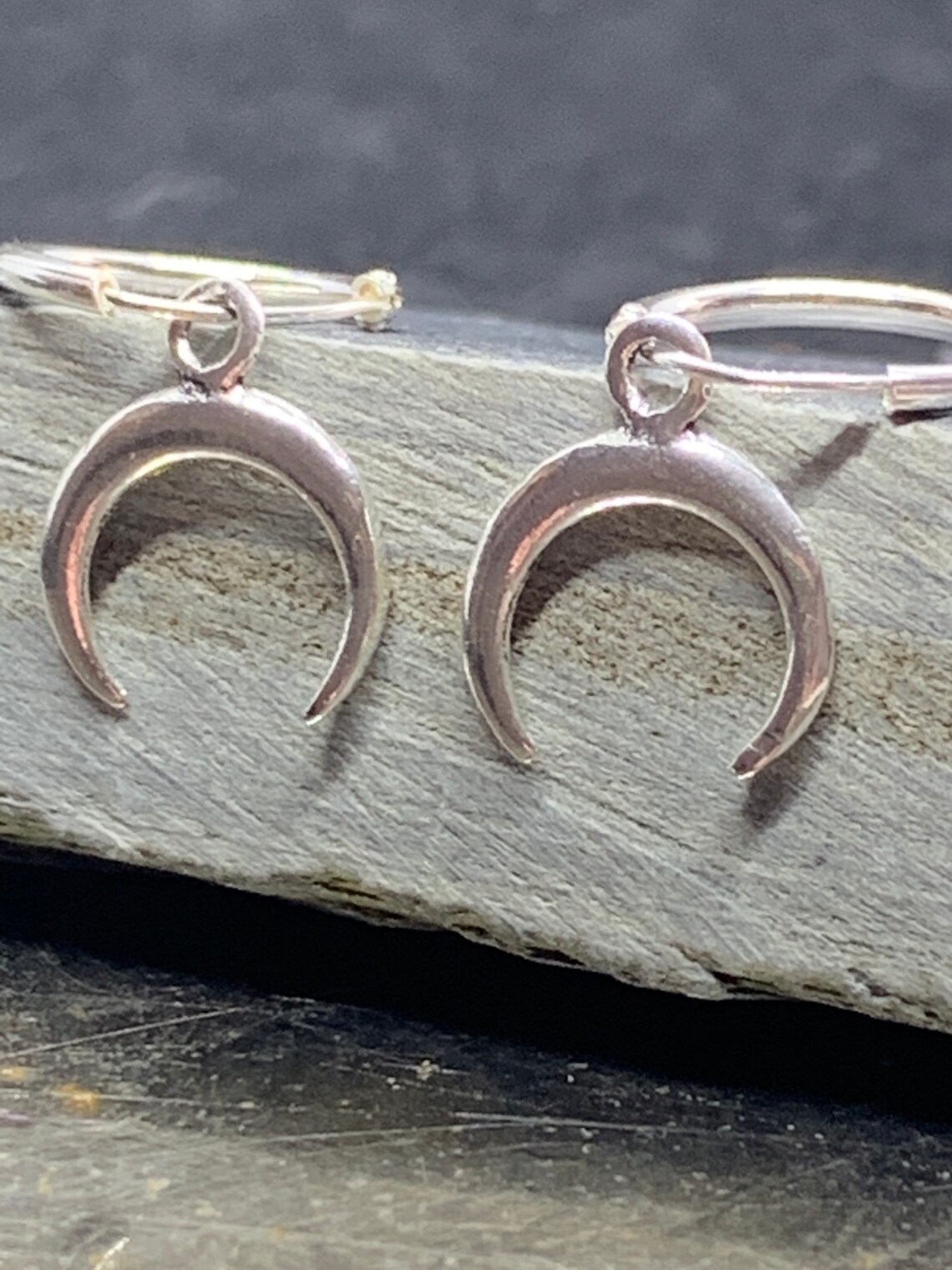 Silver horn earrings clearance, 925 Sterling silver Crescent Moon Horn Hoop Earrings | Etsy clearance