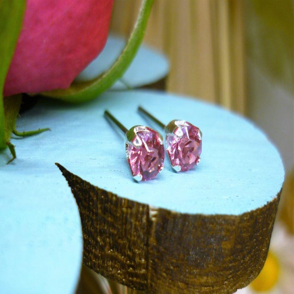 October birthstone stud earrings clearance, Sterling Silver Stud Pink Tourmaline Earrings â October Birthstone - Treasured Memories clearance