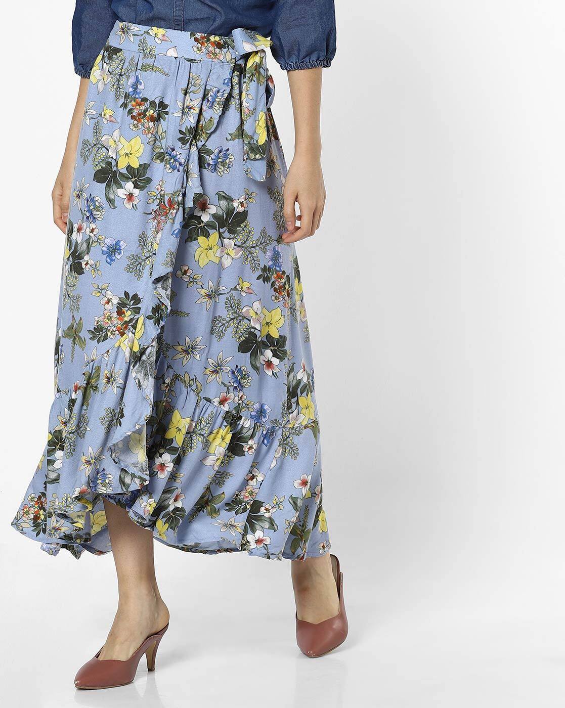 Wrap around tie skirt clearance, Buy Blue Skirts for Women by MADAME clearance