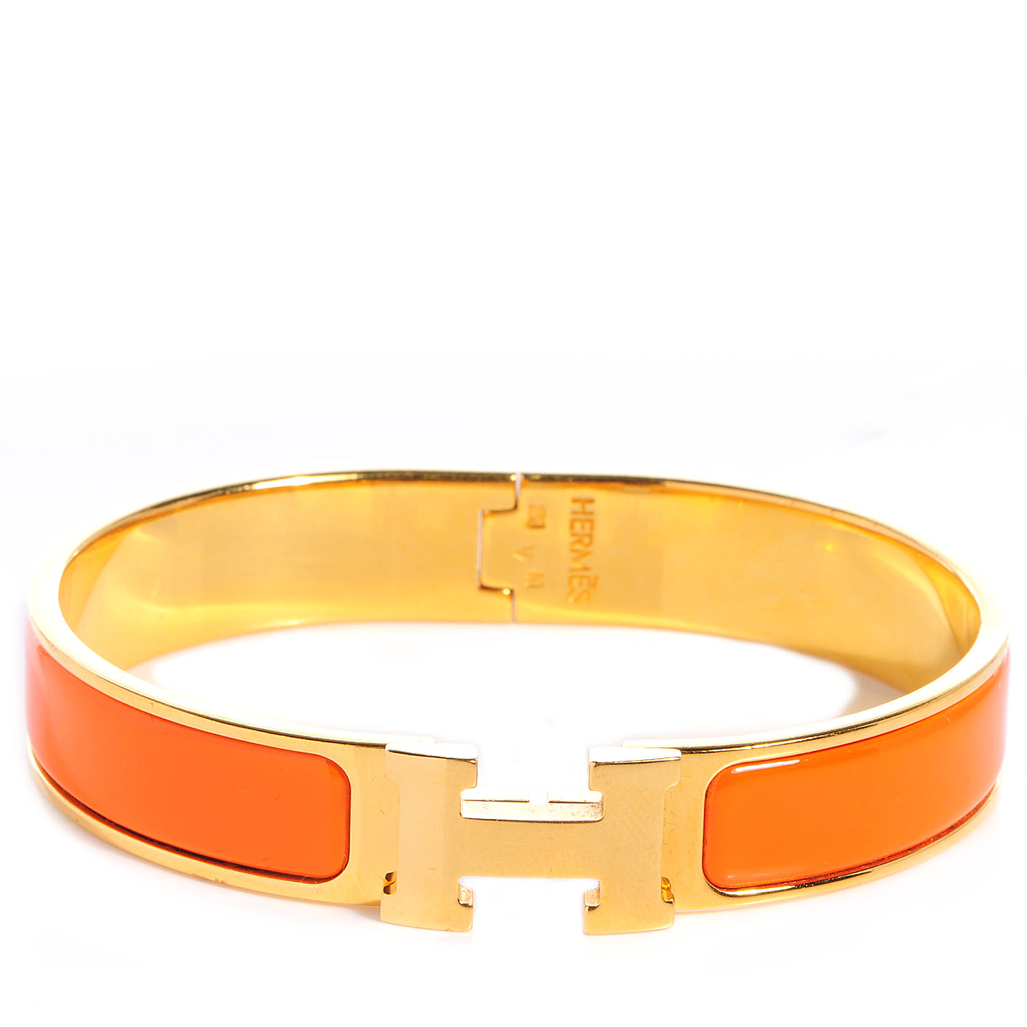 Hermes clic clac price clearance, HERMES Narrow Enamel Clic Clac H Bracelet PM Orange 78608 clearance