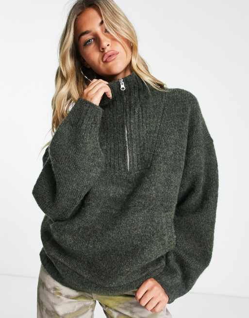 Pullover weekday clearance, Weekday â Seven â Pullover in Dunkelgrün mit ReiÃverschluss und Stehkragen | ASOS clearance