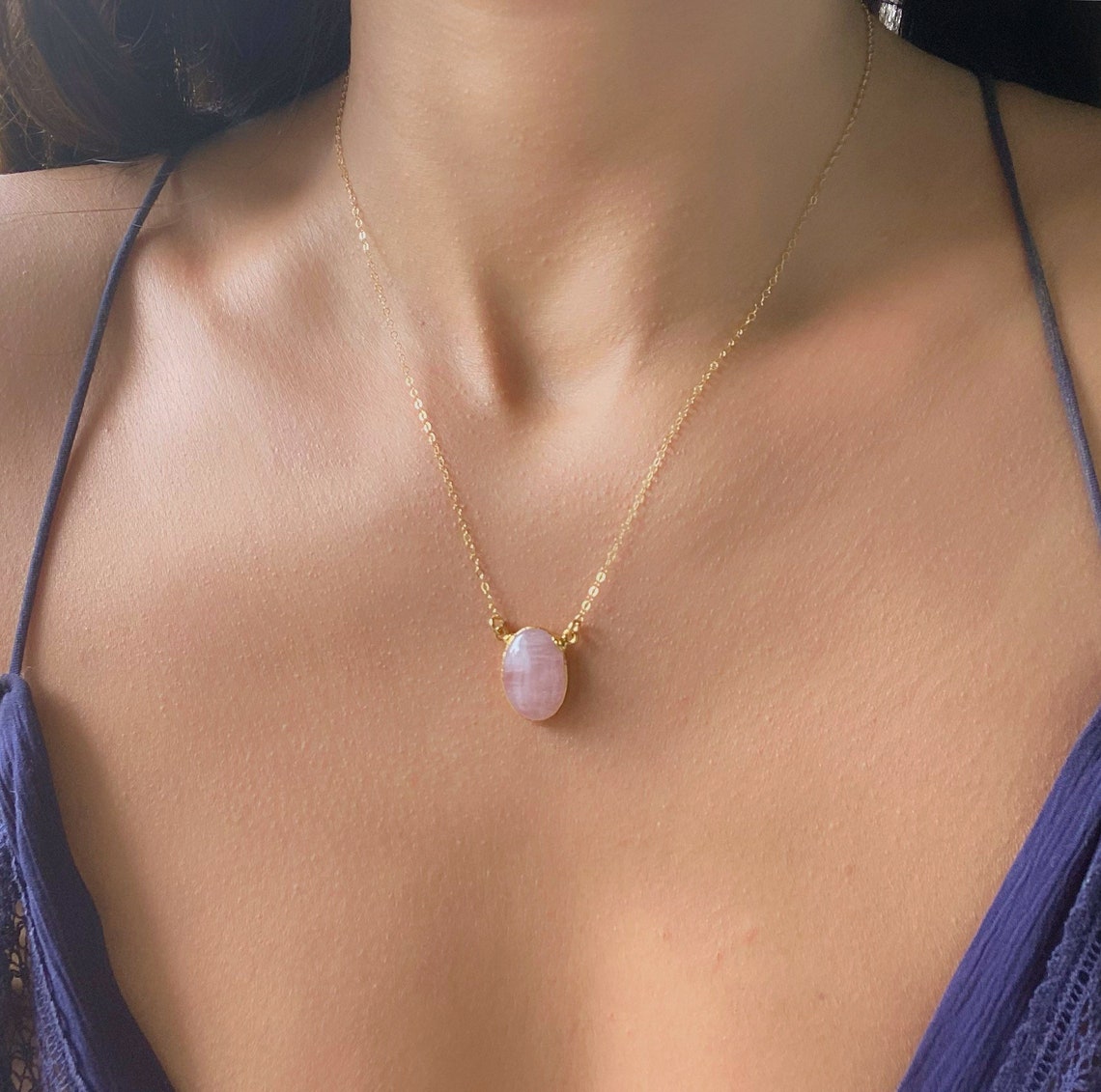 - Rose quartz gold necklace clearance