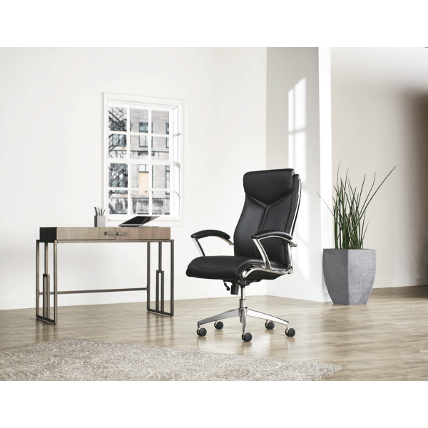 Realspace modern comfort verismo clearance, Realspace® Modern Comfort Verismo Bonded Leather High-Back Executive Chair, Brown/Chrome, BIFMA clearance