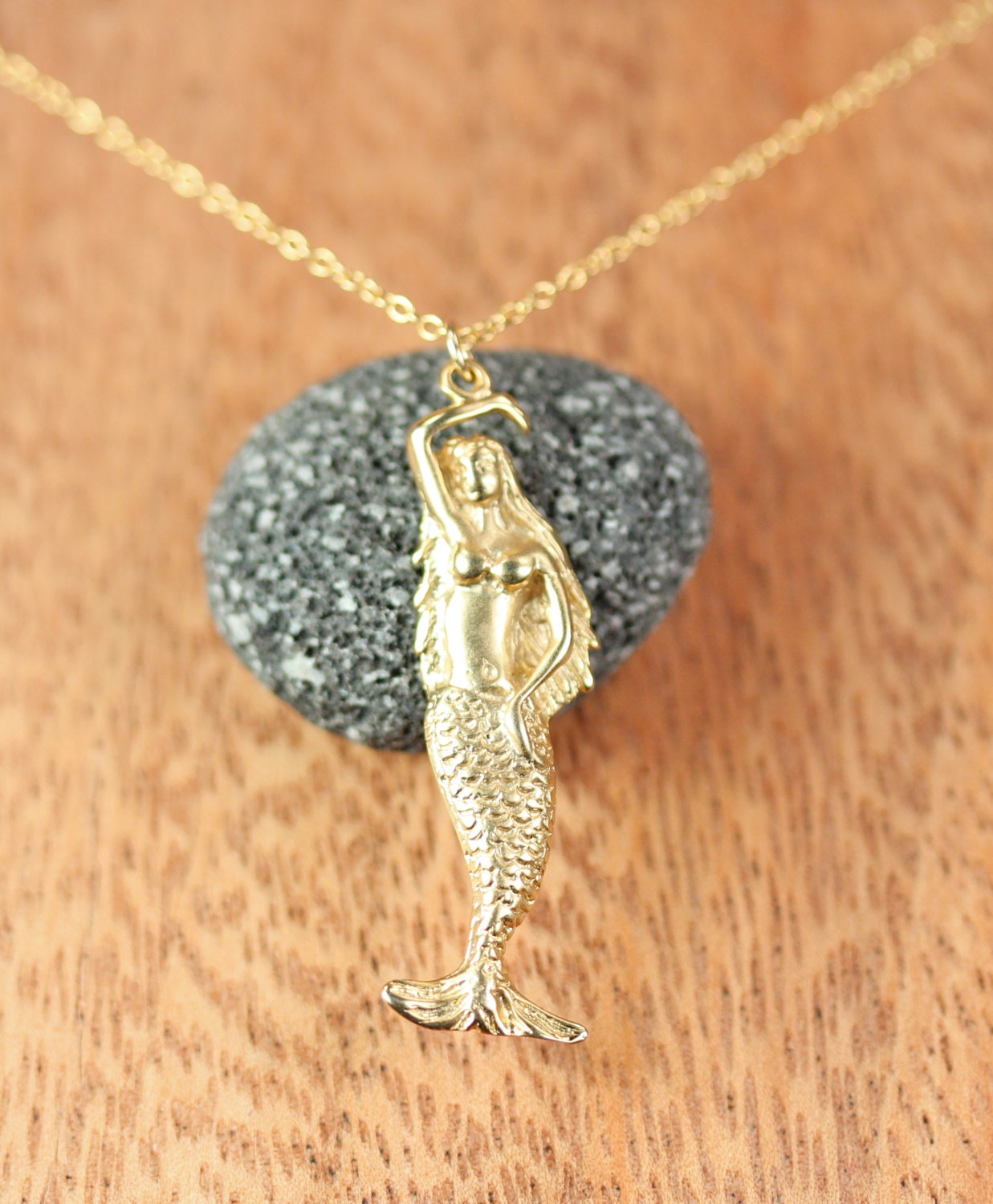 Gold mermaid pendant clearance, 14K Gold 38MM Mermaid Pendant clearance