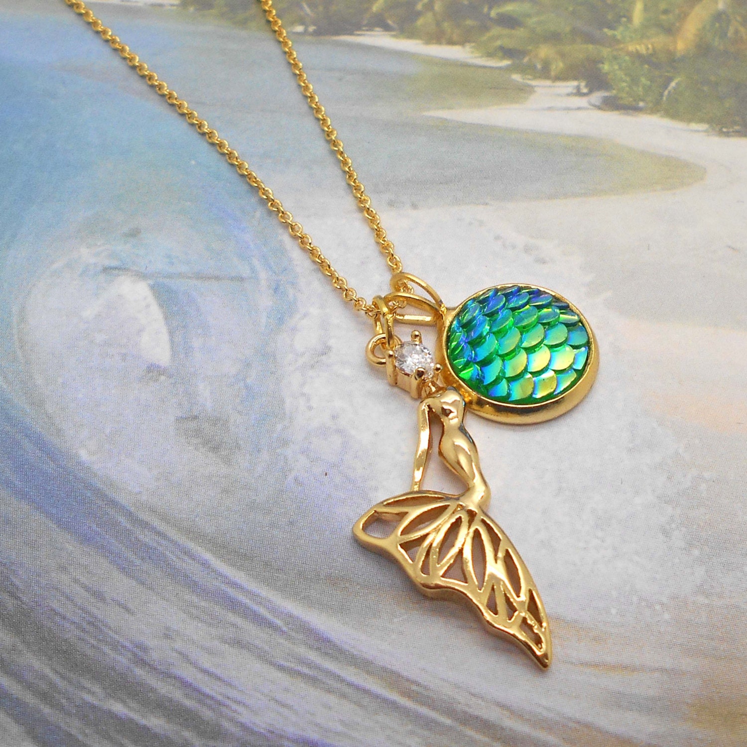 Gold mermaid pendant clearance