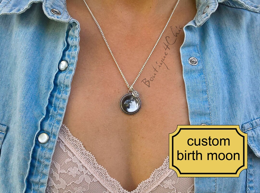 Necklace of the moon on your birthday clearance, Personalized Birth Moon Necklace with Name and Date 1st | Etsy clearance