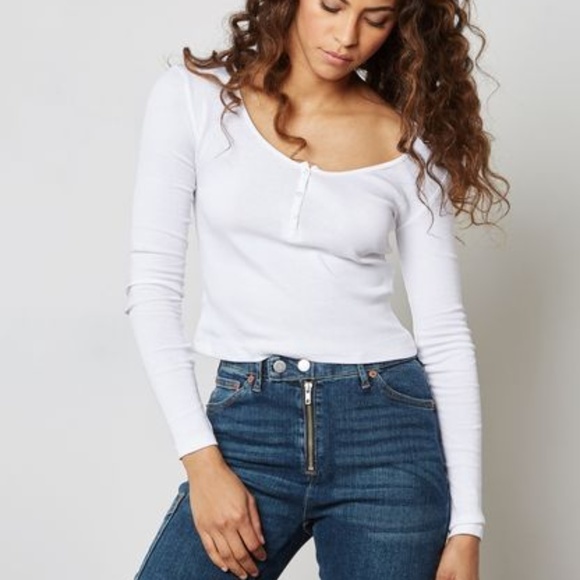 - White button long sleeve top sale