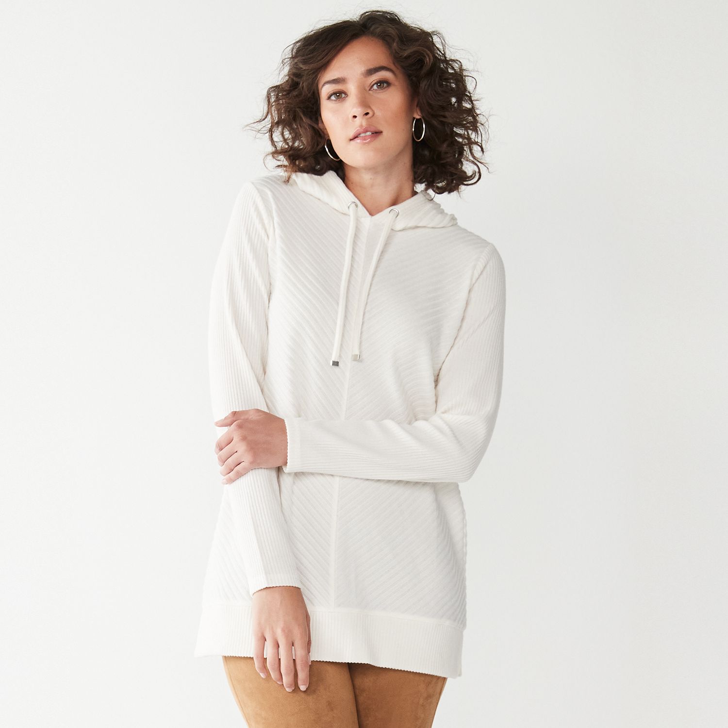 Womens white tunic sweatshirt clearance, Long Sleeve Hooded Tunic Sweatshirt clearance