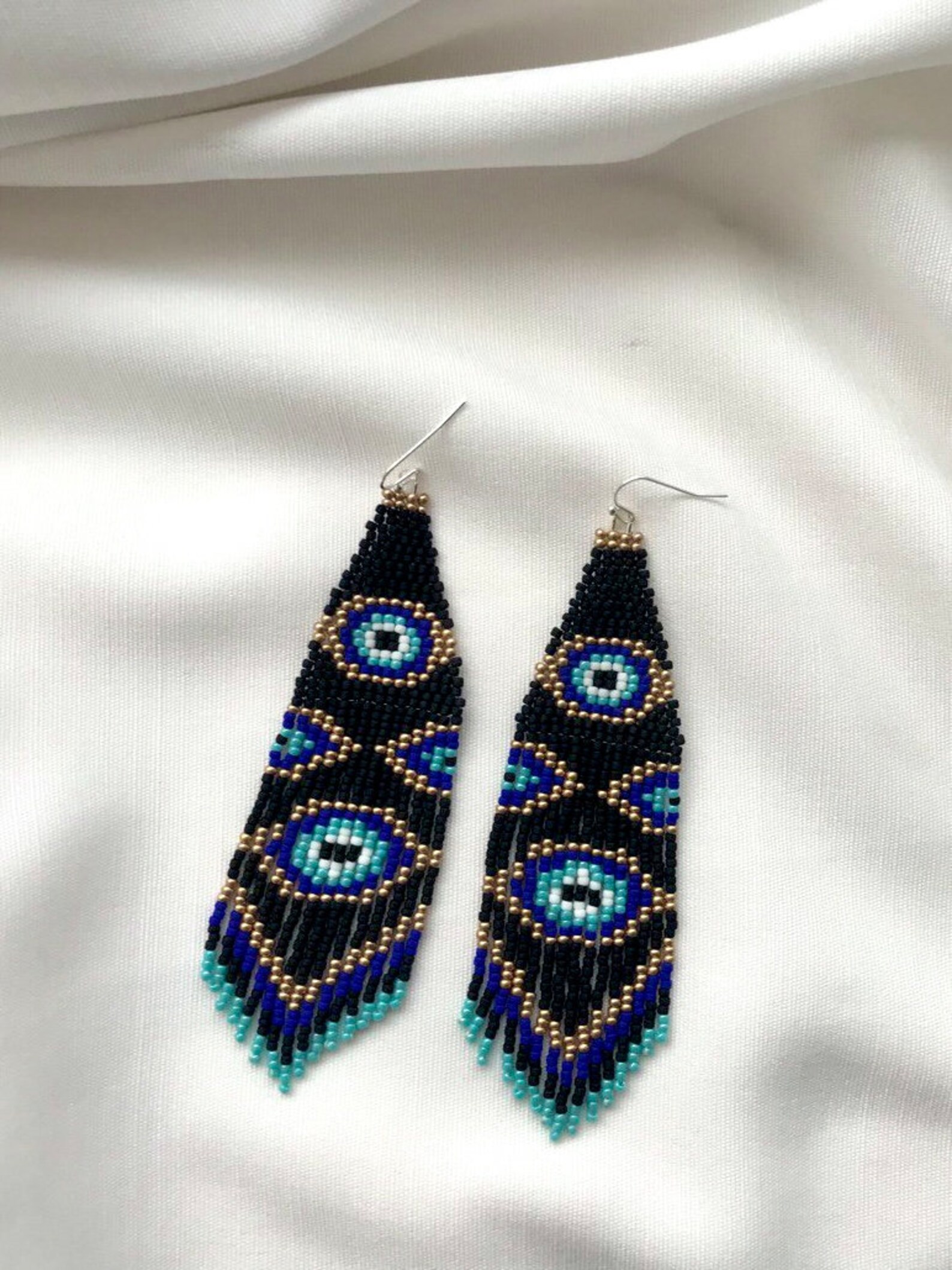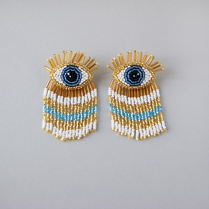 Evil eye beaded earrings clearance, Evil Eye Beaded Earrings. Gold and Blue Fringe Earrings. - Etsy clearance