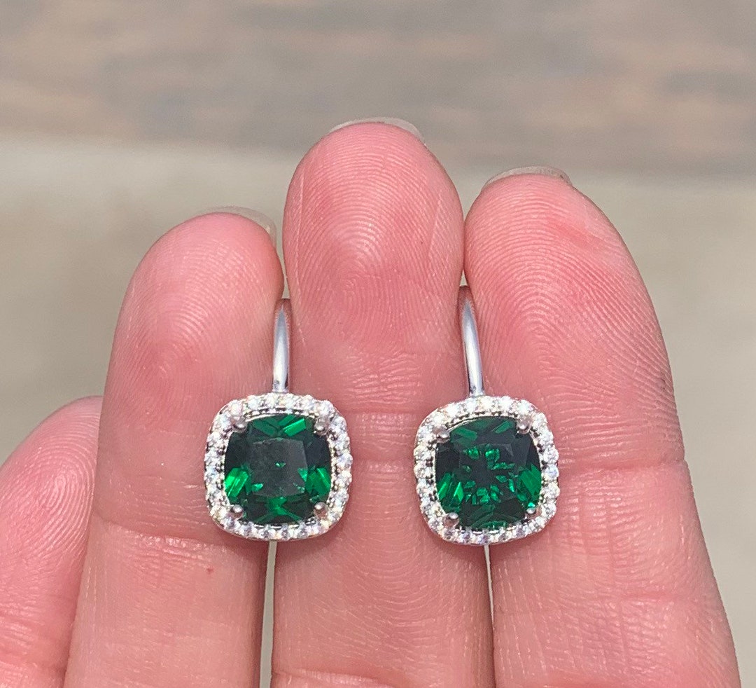 Cushion cut emerald earrings clearance, Emerald Earrings With Halo Cushion Cut Emerald Earrings - Etsy clearance