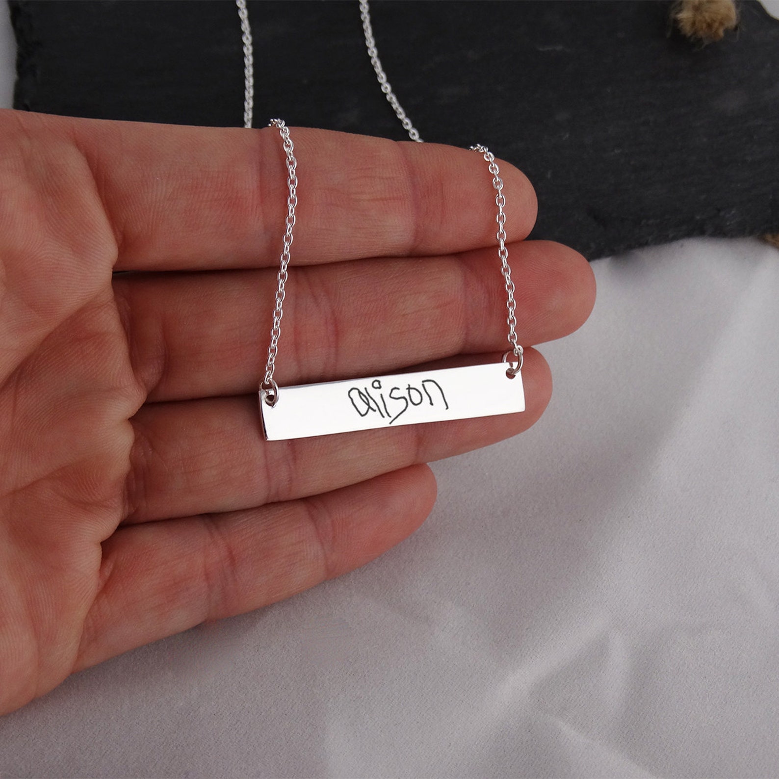 - Horizontal bar necklace engraved shop