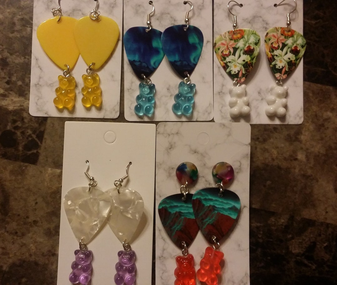 Jelly baby earrings clearance, Guitar Pick Gummy Bear Jelly Babies Earrings Jewelry by Lady - Etsy clearance