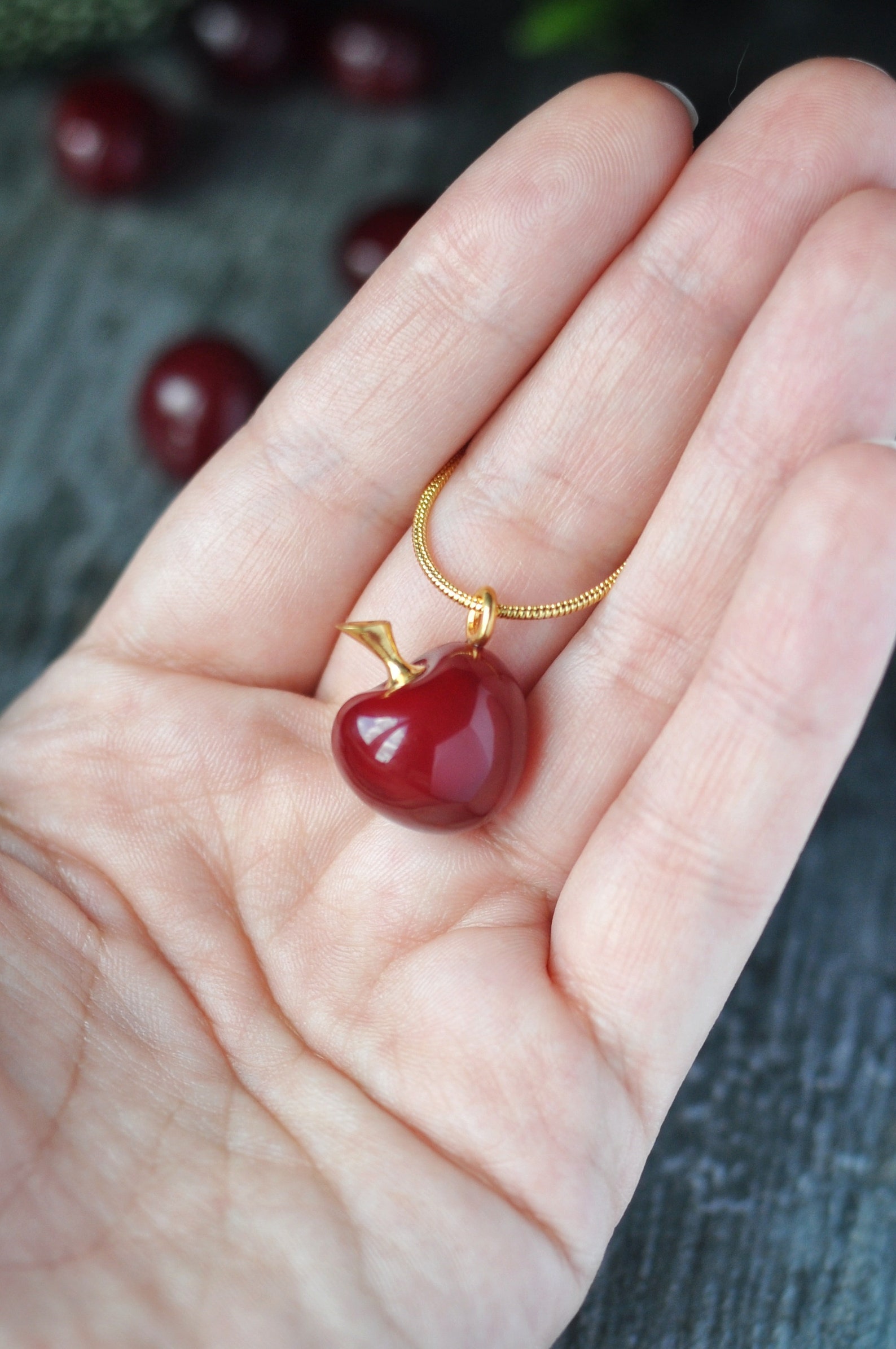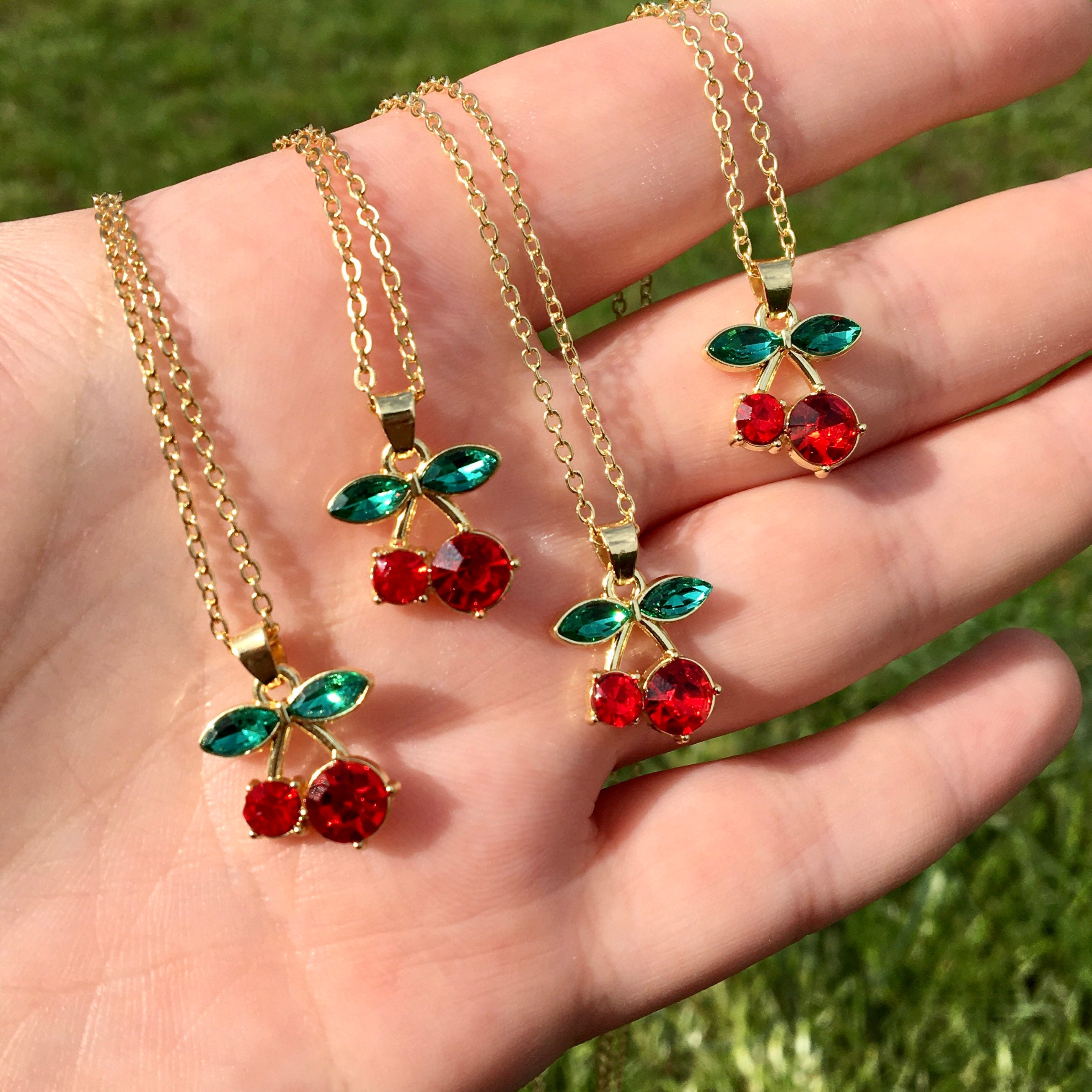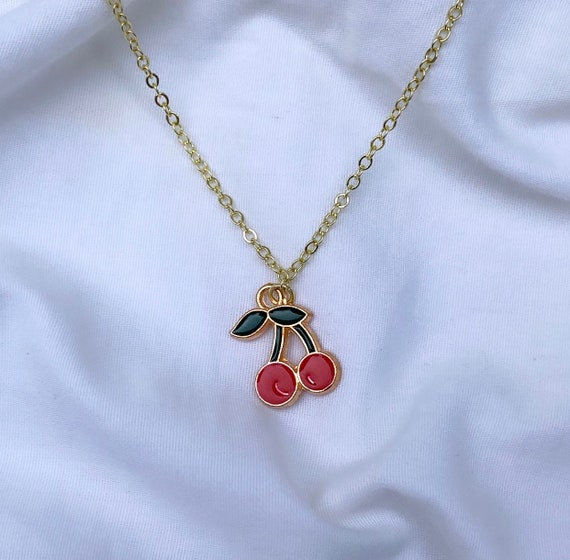 Gold cherry pendant clearance, Cherry Necklace - Gold Electroplated clearance