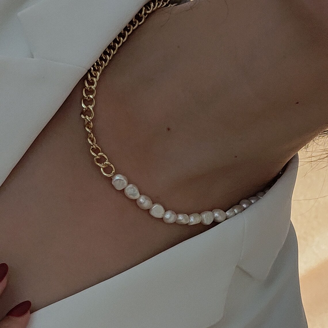 - Half chain half pearl necklace shop