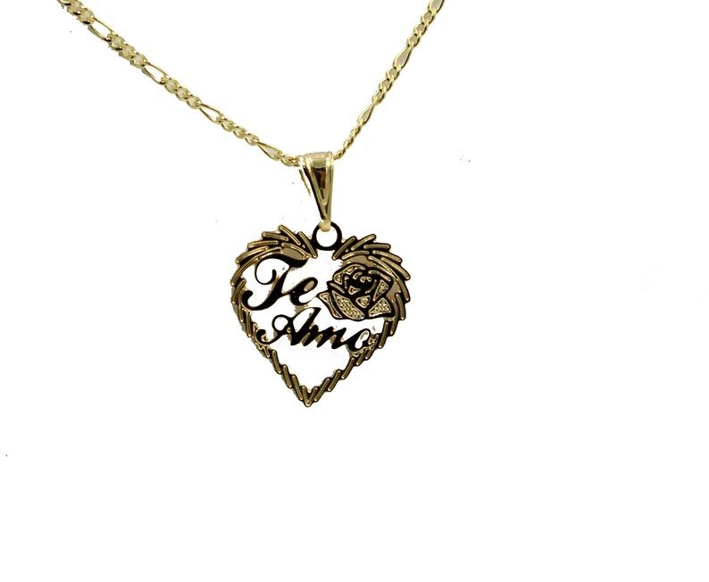 Te amo chain clearance, Ioka - 14K Yellow Gold Small "Te Amo" Couple Broken Heart Charm Pendant with 1.2mm Flat Open clearance