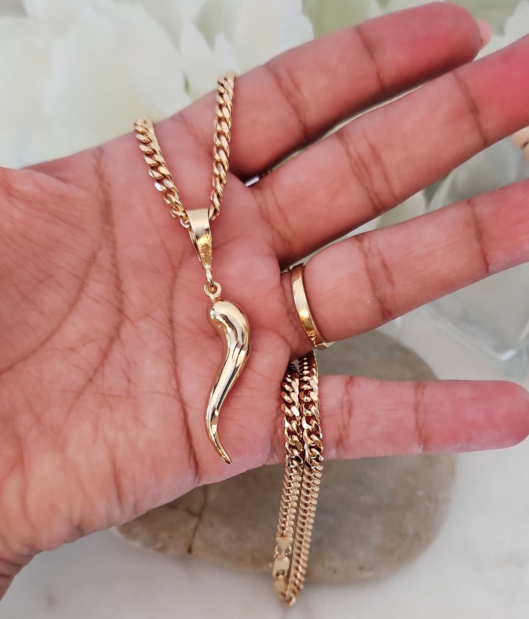 - Gold italian horn necklace mens