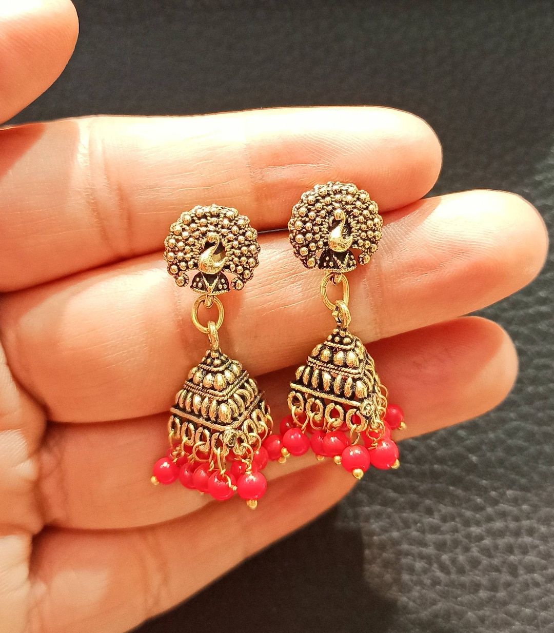 - Golden oxidized jhumka