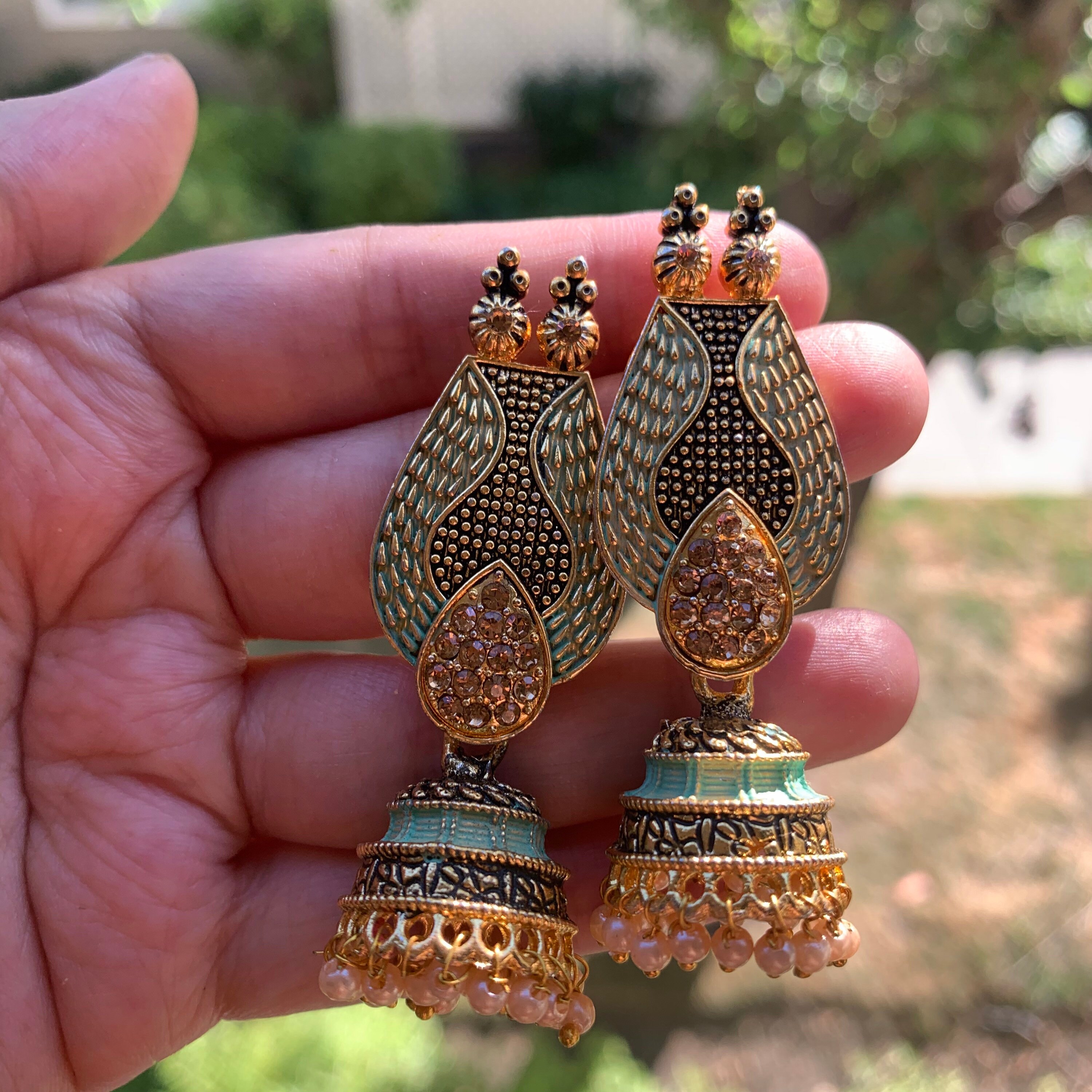 - Golden oxidized jhumka clearance