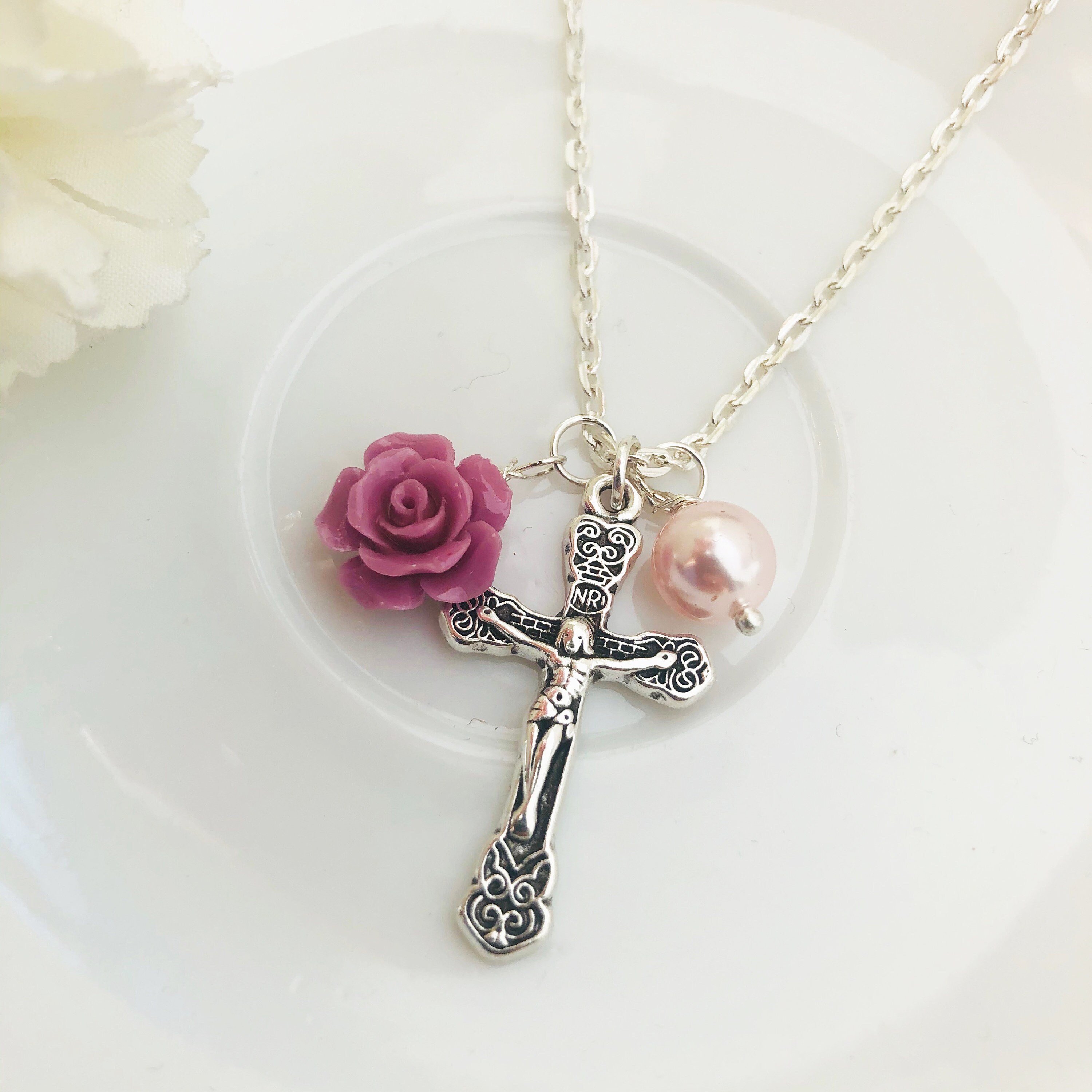 - Baptism cross necklace girl shop