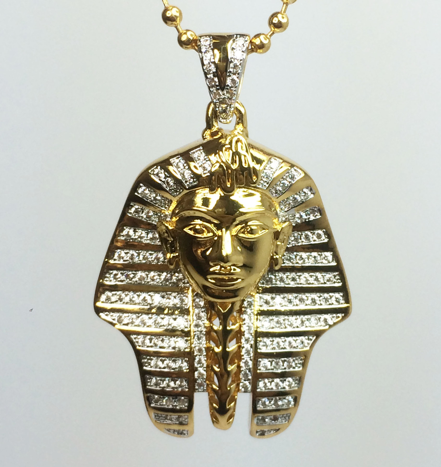 Pharaoh pendant clearance, Egyptian Pharaoh King Tut Pendant And Bead Ball Chain Necklace 18k Gold Plated - Chains clearance