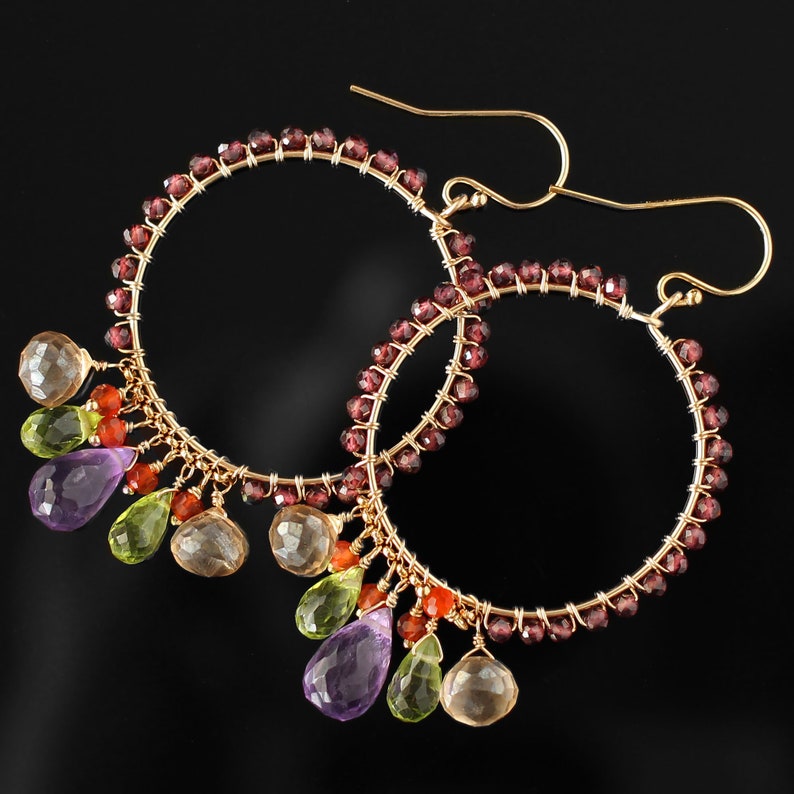 Multi colored stone hoop earrings clearance, multi-color gemstone chandelier earrings - doolittlejewelry - red topaz, multi-gemstone earrings clearance