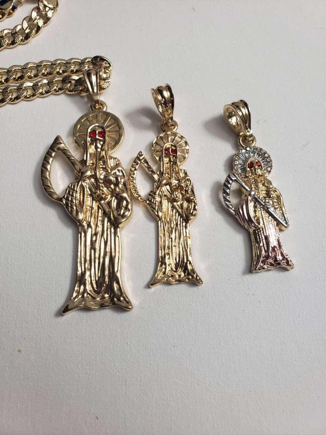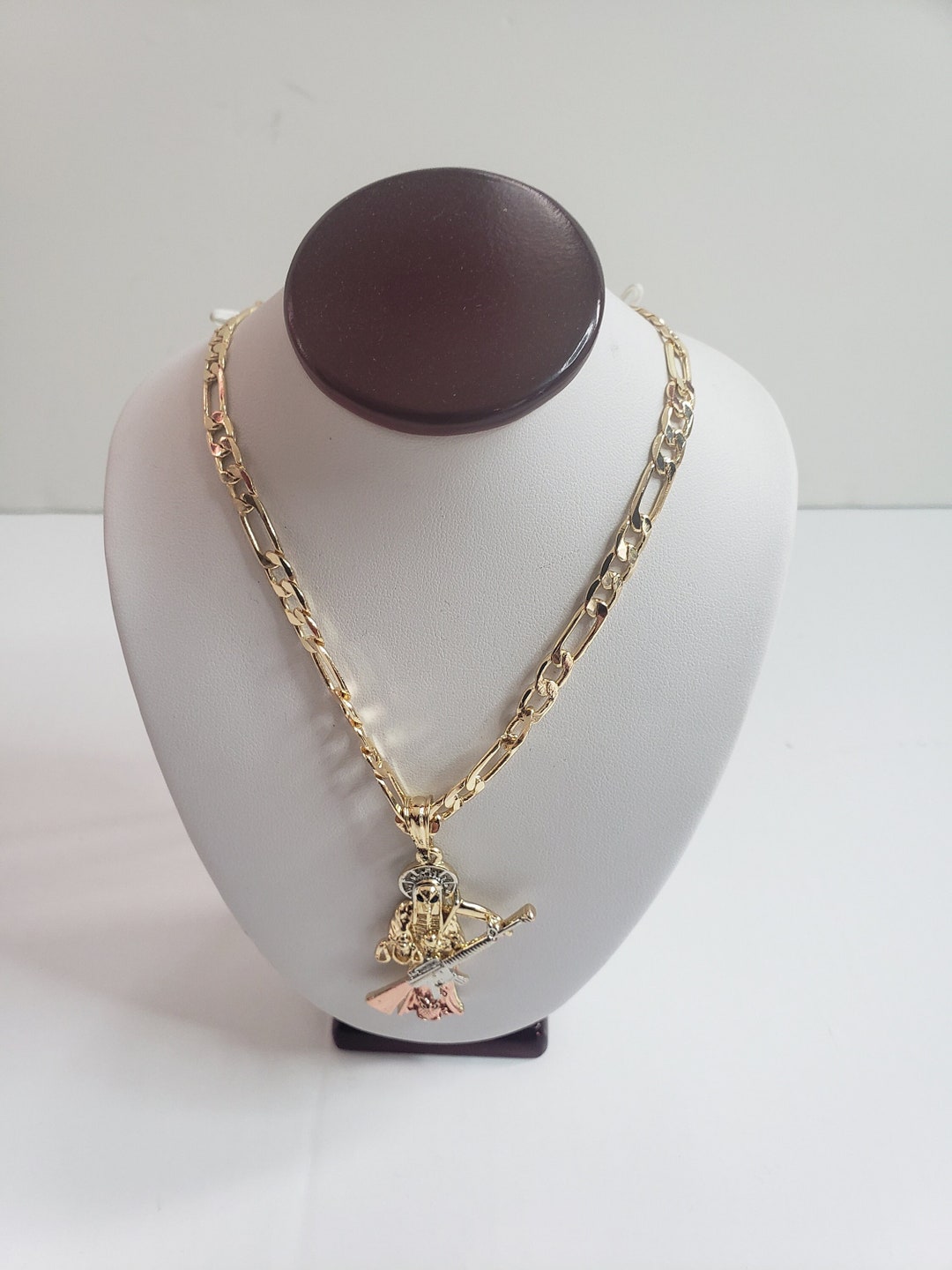 Santa muerte chain gold clearance, Santa Muerte Chain 14k Gold Plated Tricolor the White Girl - Etsy clearance