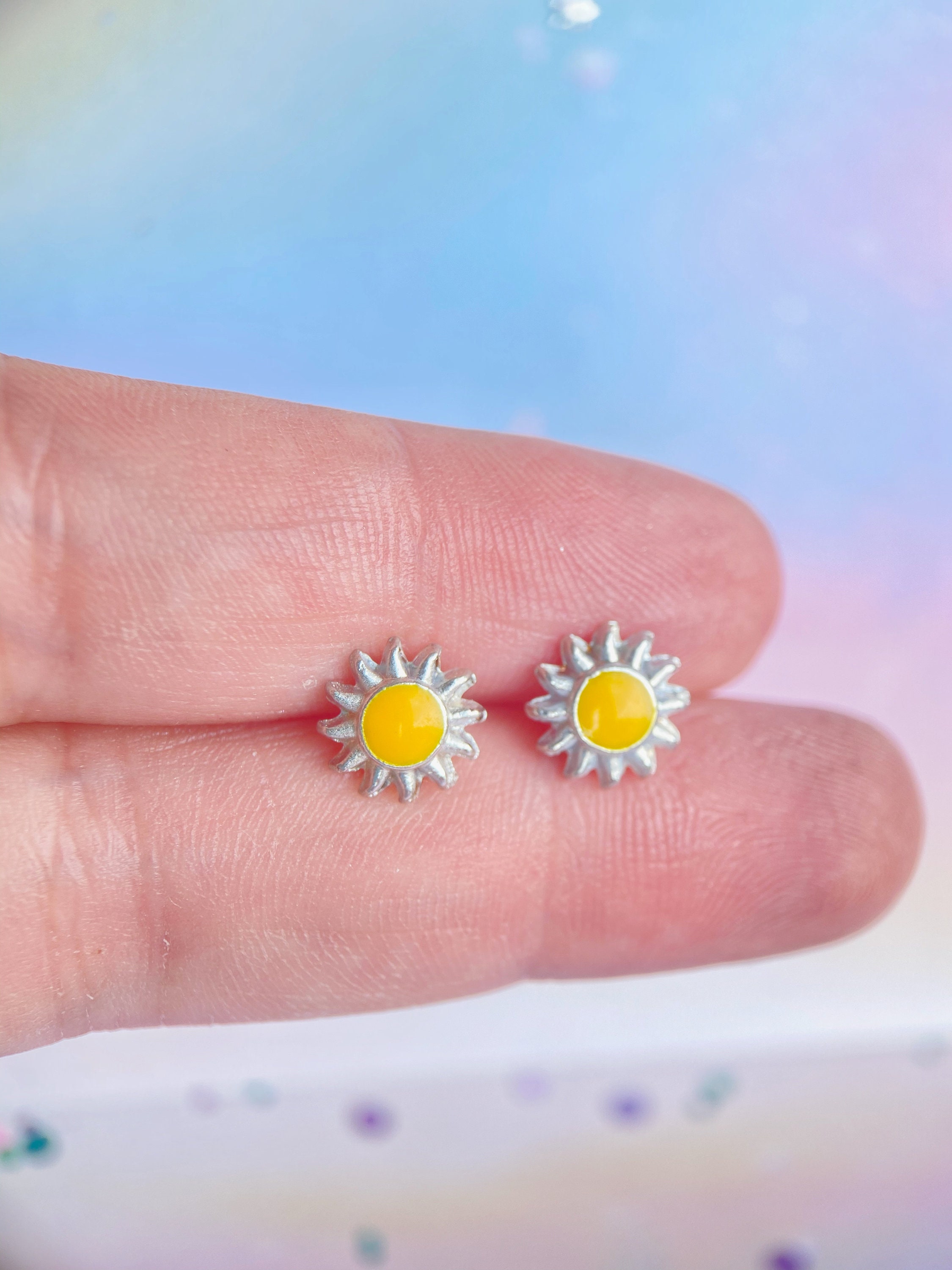 Sunshine stud earrings clearance, Small Sunshine Stud Earrings for Summer/Miniature Botanical | Etsy clearance