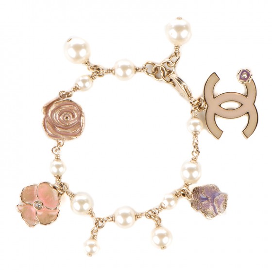 Chanel camellia bracelet clearance, CHANEL Pearl CC Camellia Charm Bracelet Beige Gold 126090 | FASHIONPHILE clearance