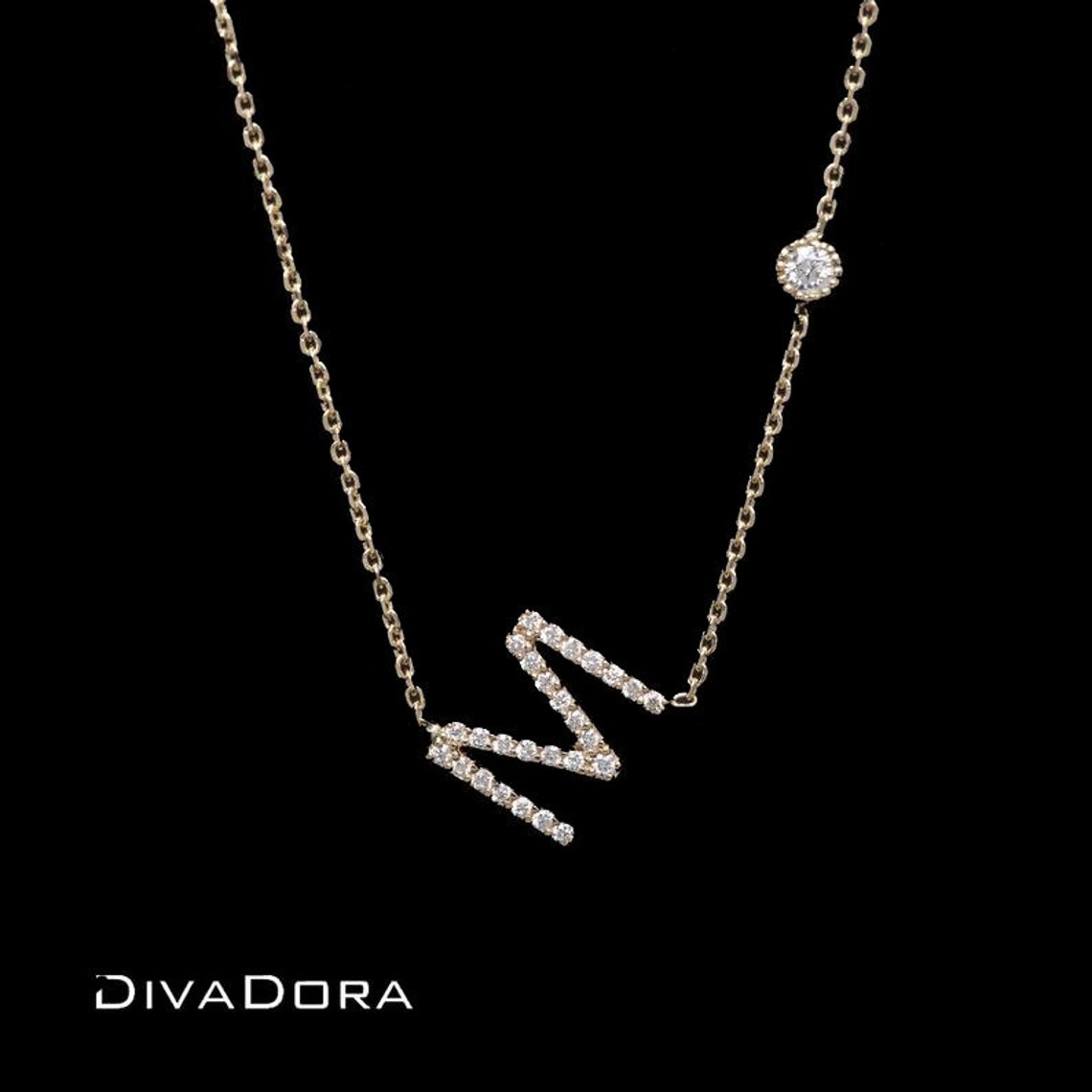 Diamond sideways initial necklace clearance, Diamond Sideways Initial Necklace Pave Diamond Initial - Etsy clearance