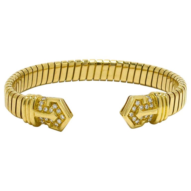 Bvlgari cuff bracelet clearance, Bvlgari Steel 18k Gold and Diamond "Tubogas" Cuff Bracelet - Bvlgari "Tubogas" Diamond Cuff clearance
