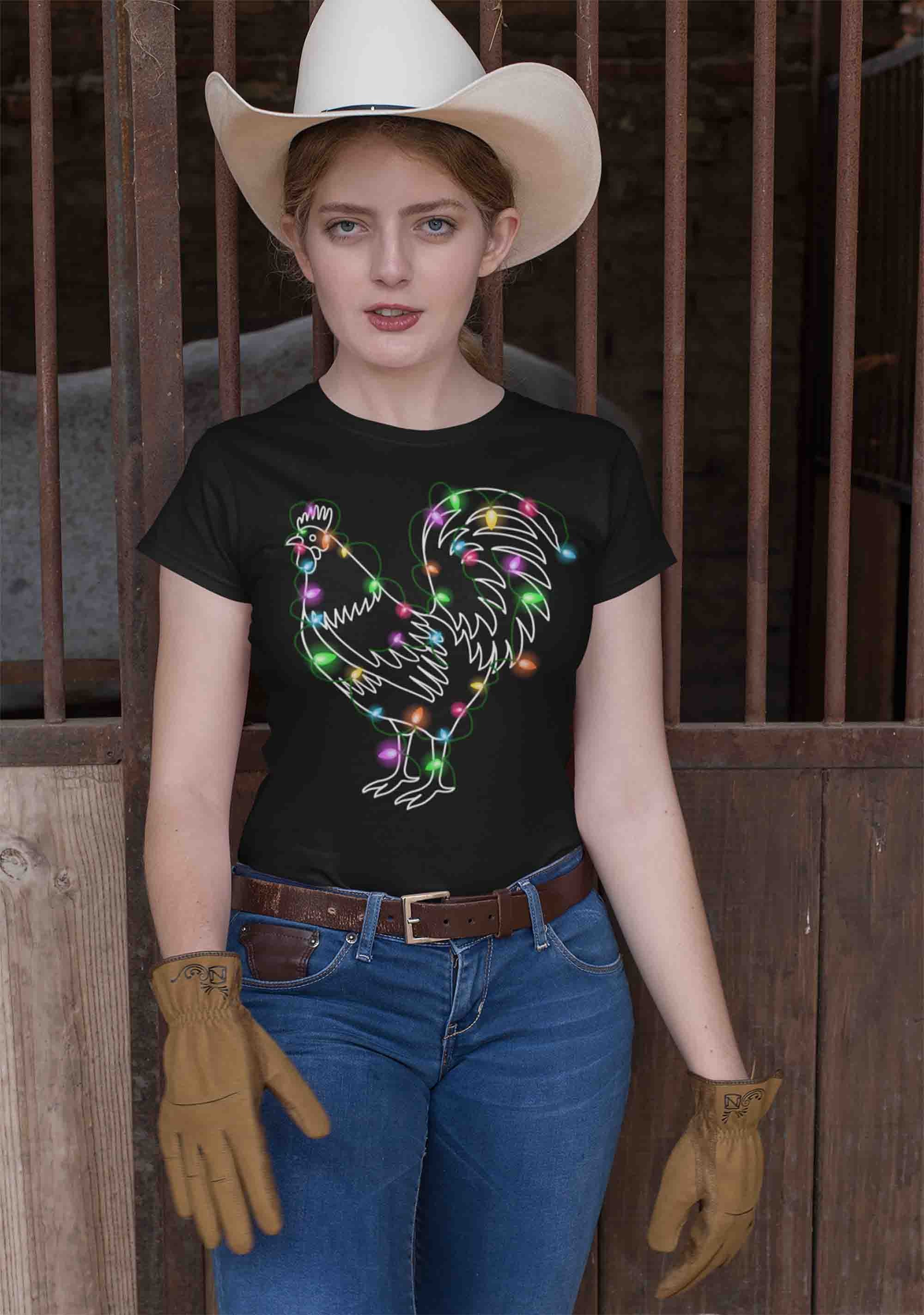 Chicken with christmas lights shirt clearance