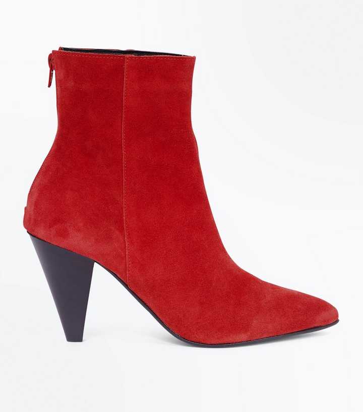 New look cone heel boots clearance, Red Leather Cone Heel Pointed Boots | New Look clearance