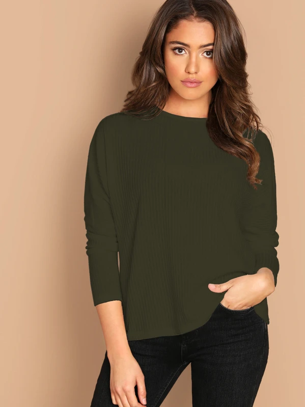 Rib knit dolman sleeve tee clearance, Rib-knit Dolman Sleeve Tee | SHEIN USA clearance