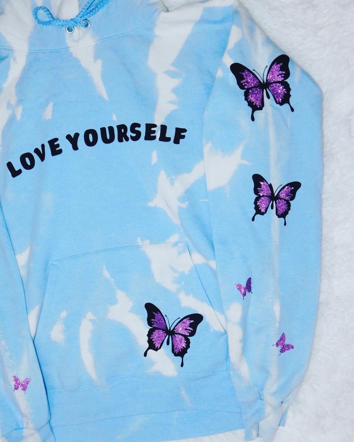 - Love yourself purple hoodie with butterflies