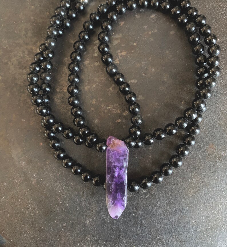 Mens black obsidian necklace clearance, Mens Black Obsidian Necklace With a Purple Amethyst Crystal - Etsy clearance