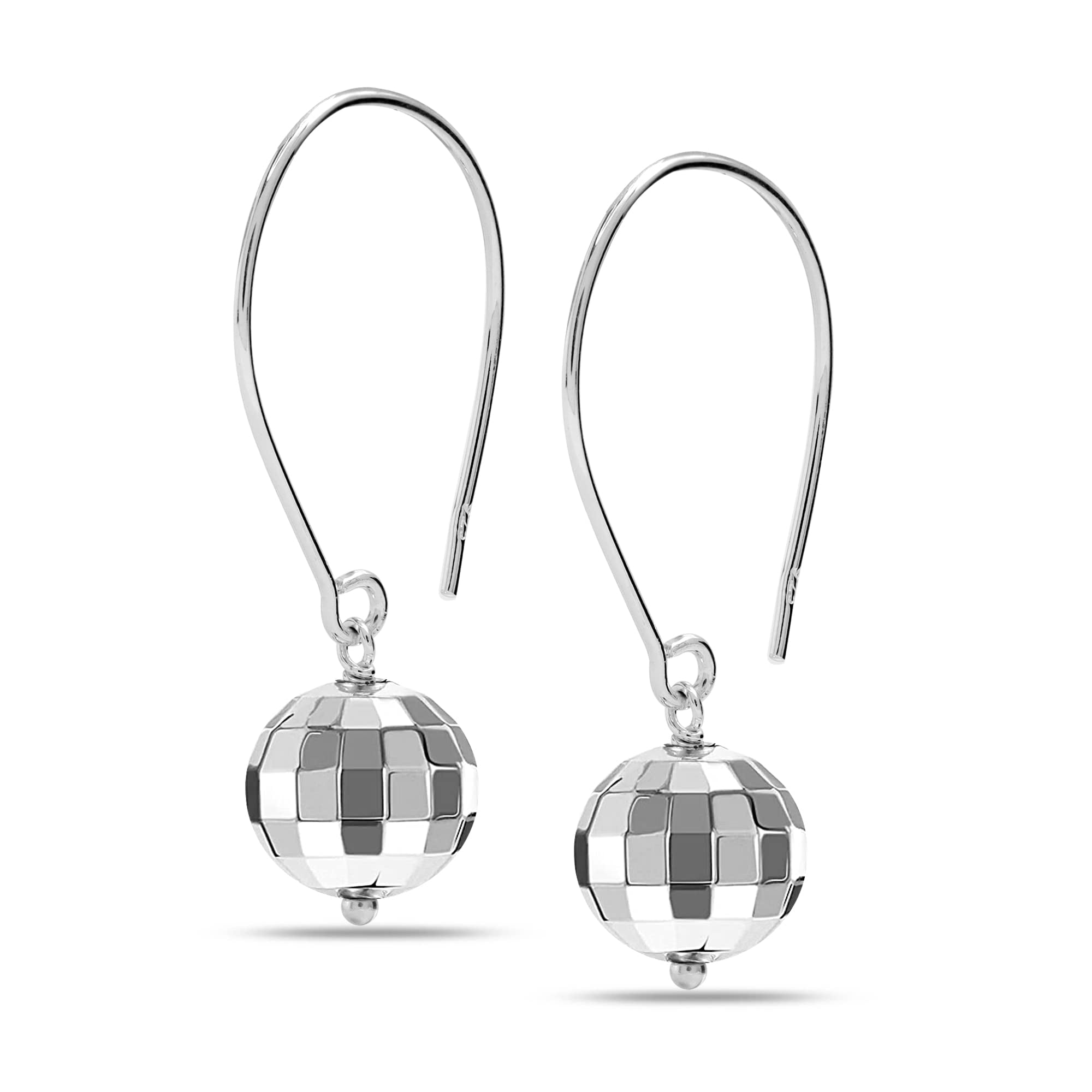 Disco ball drop earrings clearance, LeCalla 925 Sterling Silver Threader Wire Hammered Mirror Ball Drop Earrings Light-Weight Disco clearance