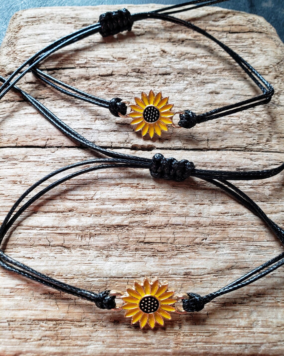 Sunflower best friend bracelets clearance, Sunflower Friendship Bracelet Alloy Charm Black Wax Rope | Etsy clearance