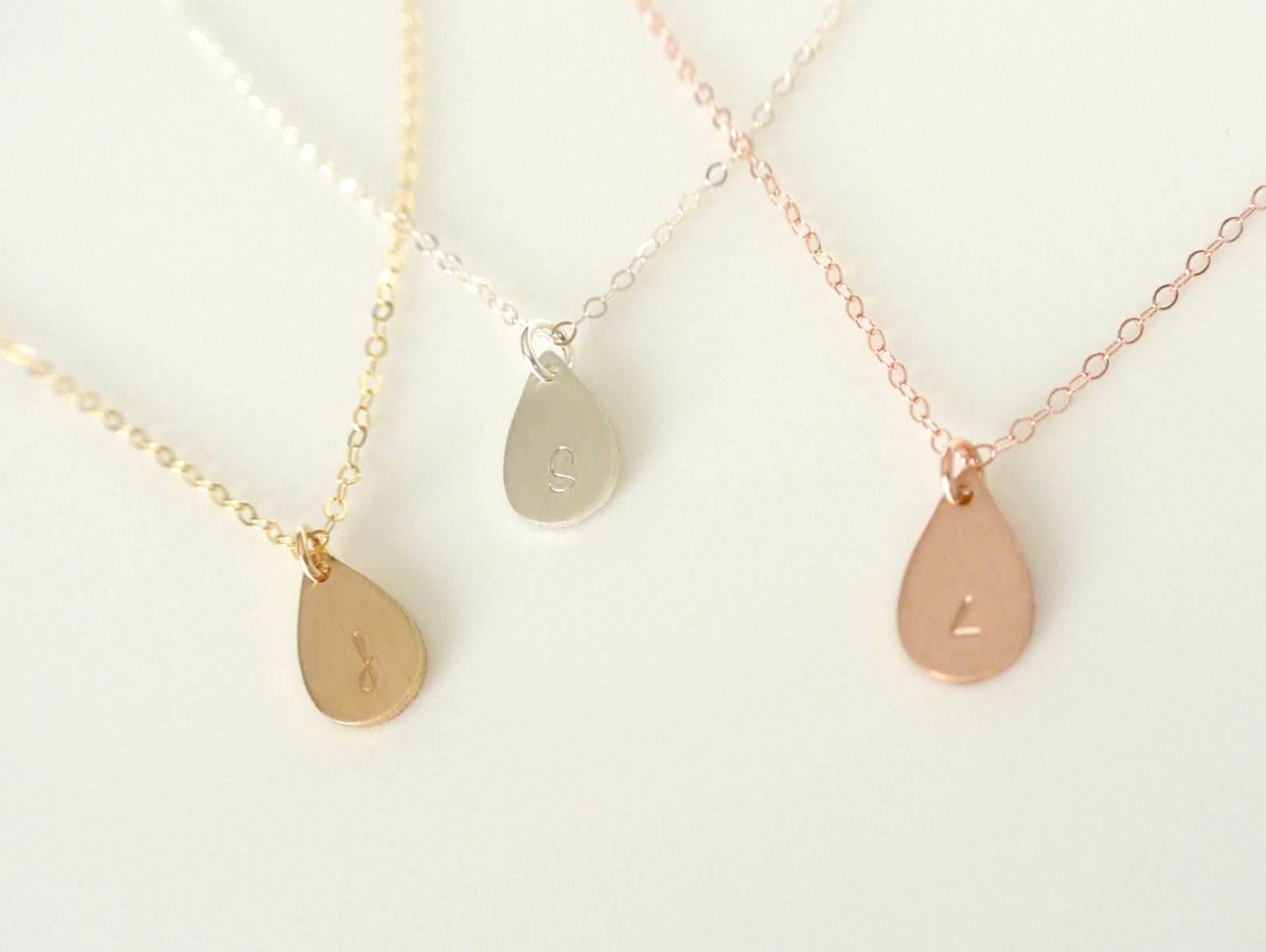 Teardrop initial necklace clearance, Teardrop Initial Necklace Silver Gold and Rose Gold Fill - Etsy clearance