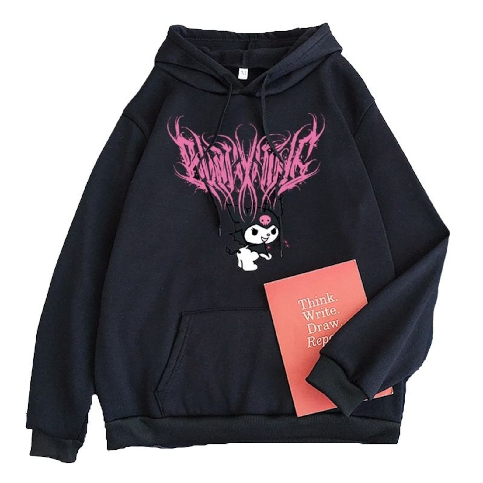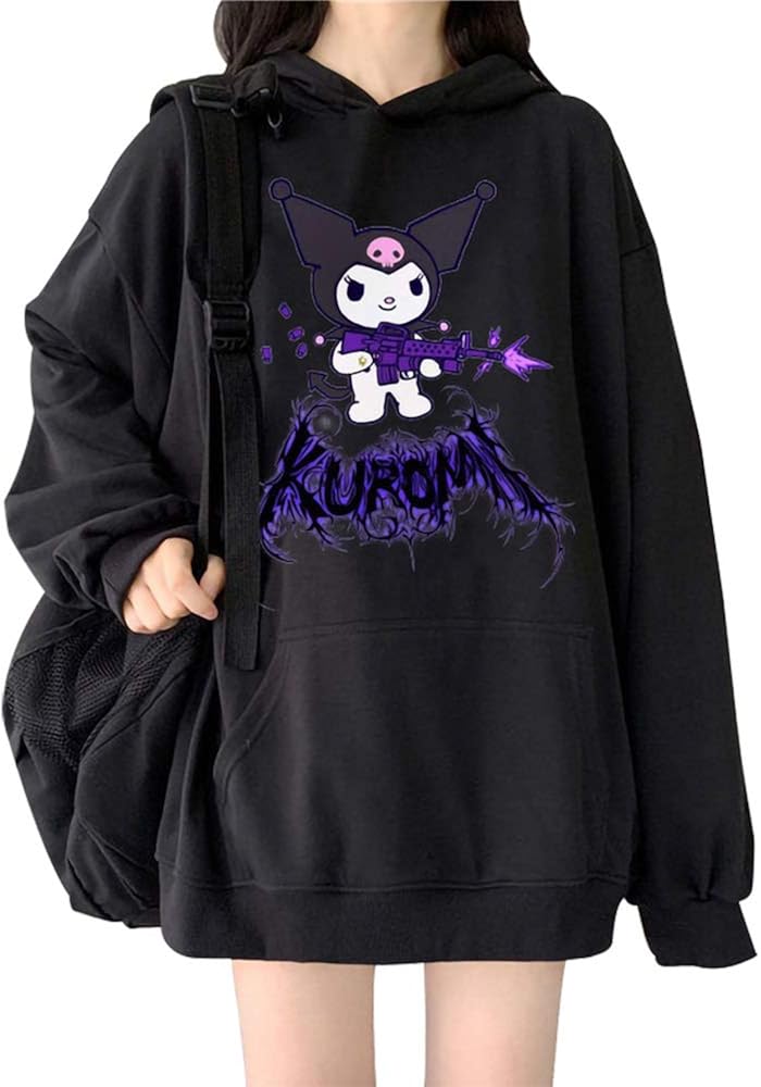 Kuromi sweatshirt clearance, Harajuku Cartoon Cute Funny Print Short Sleeve Kuromi Hoodie Top Autumn Street Wear O-Neck Sweet clearance