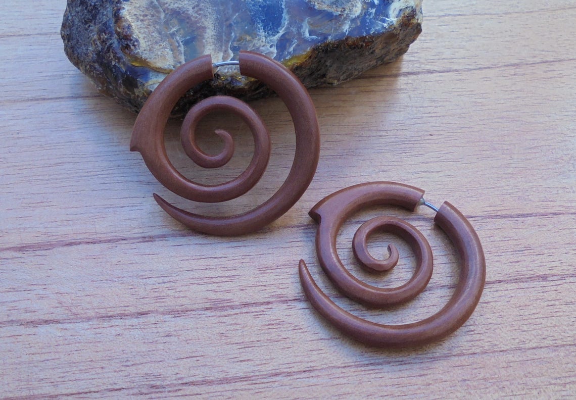 Fake spiral earrings clearance, Fake Gauge Earrings Spiral Fake Earrings Wood Fake Earrings - Etsy clearance