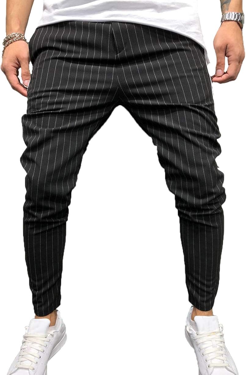 Fashion mens stripe slim pencil pants clearance, ZAXARRA Mens Casual Slim Fit Stripe clearance