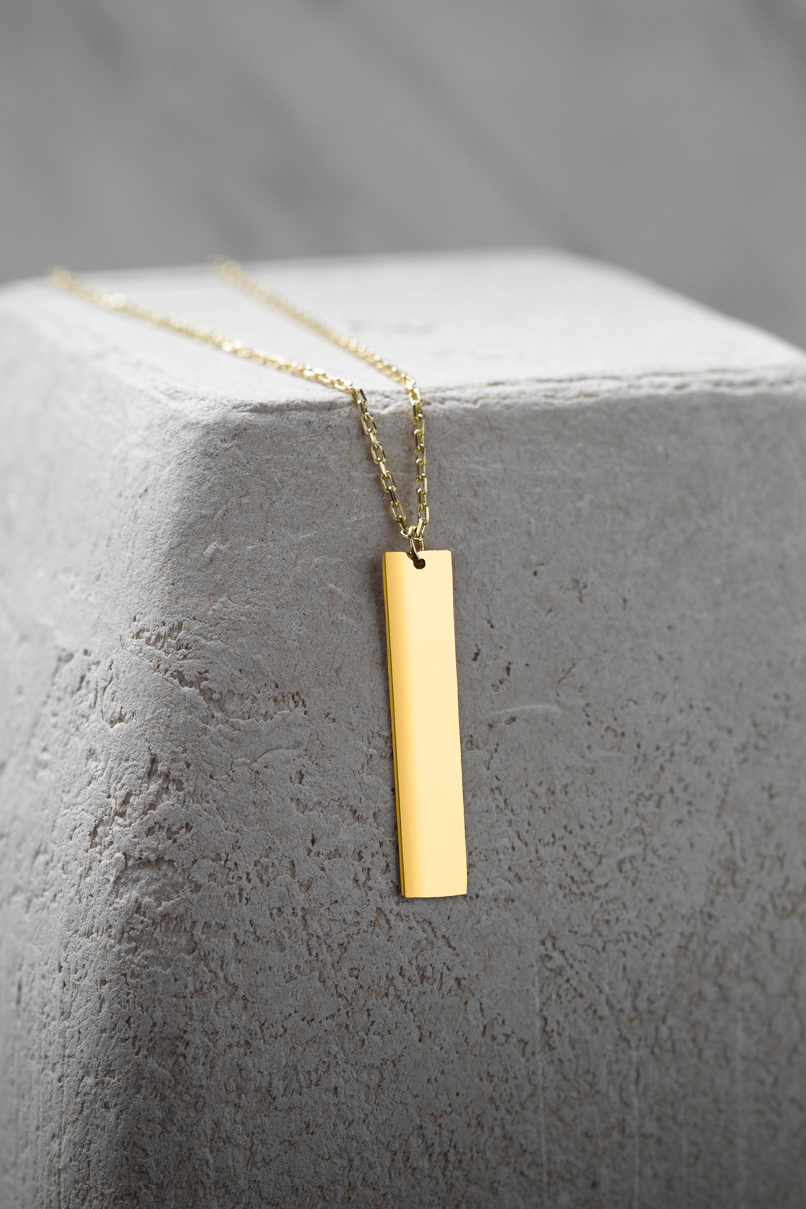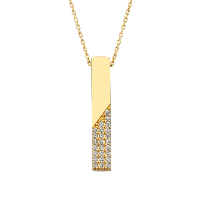- Vertical bar necklace 14k gold sale
