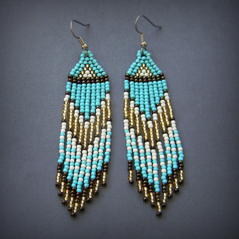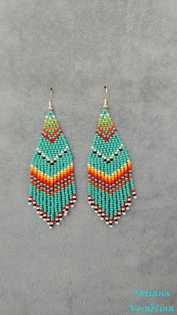 Turquoise seed bead earrings clearance, Turquoise beaded earrings Seed bead earrings Long earrings | Etsy clearance