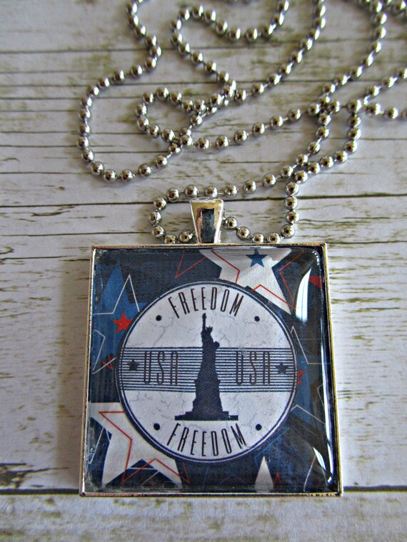 Statue of liberty necklace clearance, Statue of Liberty Necklace Glass Tile by BrownBeaverBeadery clearance