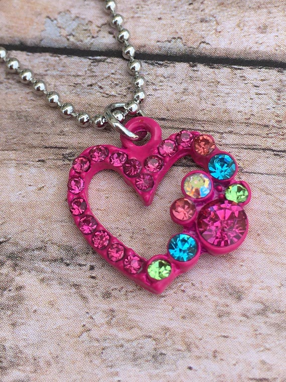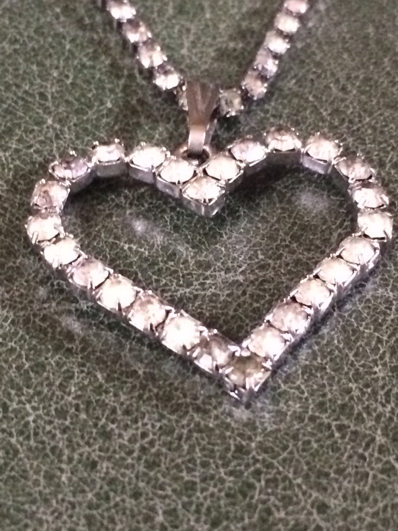 Rhinestone heart necklace clearance, Vintage Heart Necklace Rhinestone Neckace Rhinestone Heart - Etsy clearance