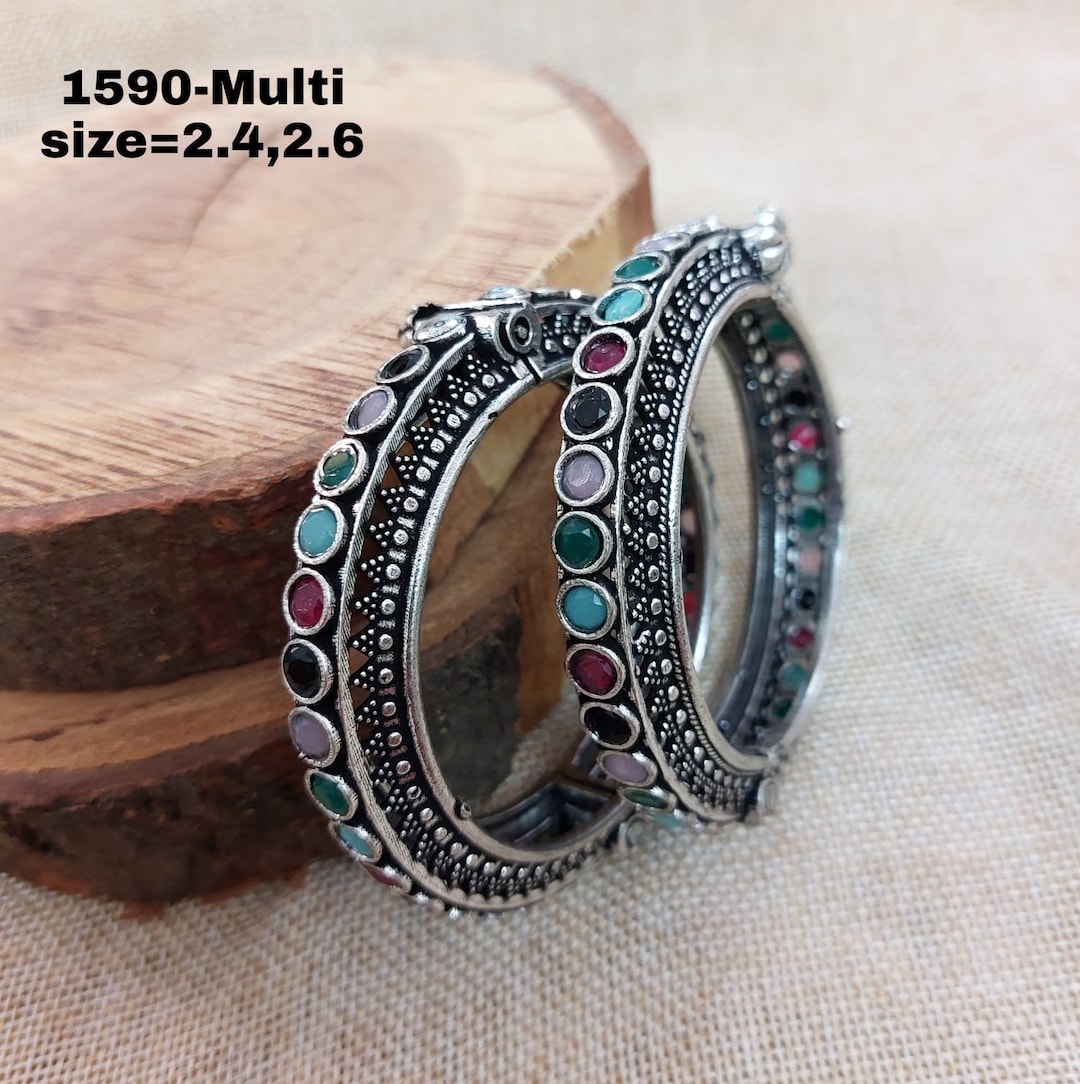Kangan design silver clearance, Designer Silver Bangles kangan Kada Meenakari Adjustable Bracelets Multi Colours Indian clearance